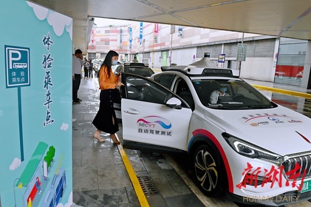 在距離315線智慧公交車不遠的湘江新區(qū),一輛自動駕駛出租車,正在搭乘市民體驗“紅燈停、綠燈行、自動超車”的樂趣。這是國內(nèi)首批向公眾開放的量產(chǎn)自動駕駛出租車。