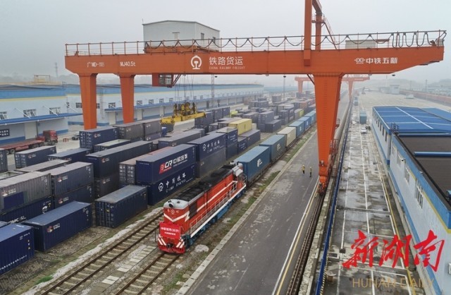 (2月27日15時30分,滿載貨物的中歐班列(長沙)從長沙貨運中心長北貨場駛出,預(yù)計16天左右抵達白俄羅斯首都明斯克。湖南日報·新湖南客戶端記者 童迪 攝)